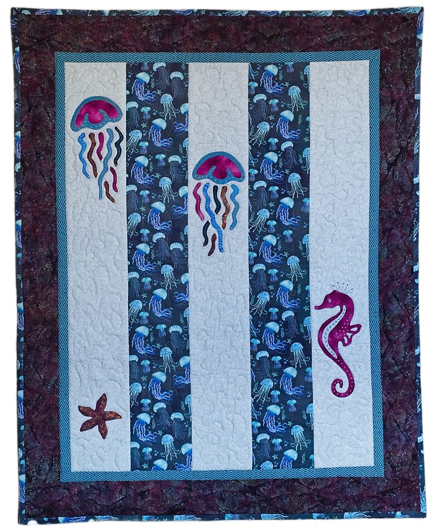 When we lived in Costa Rica I made a few quilts for children’s groups. But it was after we settled in Las Cruces and I connected with the local chapter of Project Linus that I really got serious about children’s quilts. The group here is so talented and dedicated, serving many organizations throughout southern New Mexico with more than 3,000 blankets each year. I set a goal of making two quilts per month, which forced me to learn machine quilting. But I still quilt just on a domestic sewing machine, and I incorporate some handwork into many of the quilts.